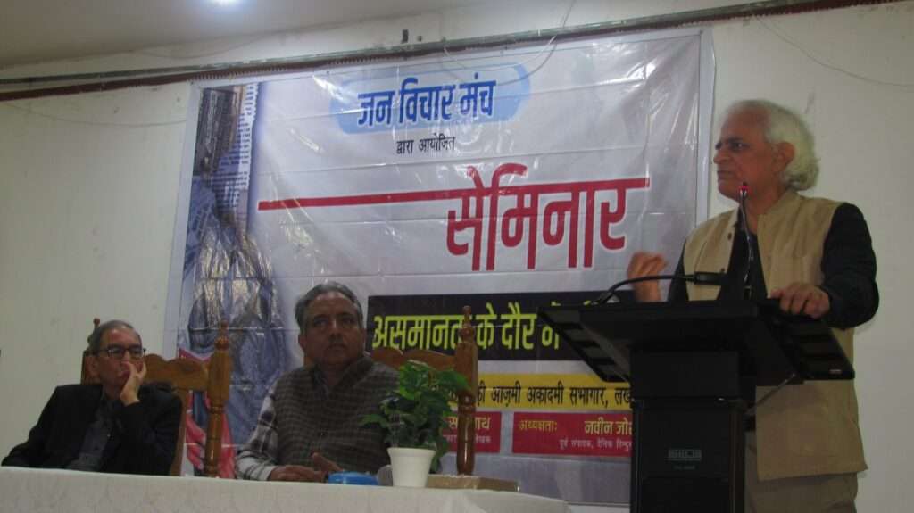 उन्होंने कहा कि जब तक काम का अधिकार, शिक्षा का अधिकार मूल अधिकारों में शामिल नहीं हो जाते असमानता को कम नहीं किया जा सकता। उन्होंने आंकड़े प्रस्तुत करते हुए कहा कि जहां वर्ष 2004 में लोकसभा में 543 सांसदों में केवल 30 फीसदी करोड़पति तबके से आते थे। वर्ष 2024 तक आते आते यह संख्या 93 फीसदी तक पहुंच गई। पी साइनाथ ‘जन विचार मंच’ द्वारा लखनऊ के कैफी़ आज़मी सभागार में आयोजित संगोष्ठी ‘असमानता के दौर में मीडिया’ में मुख्य वक्ता के तौर पर अपने विचार साझा कर रहे थे।
